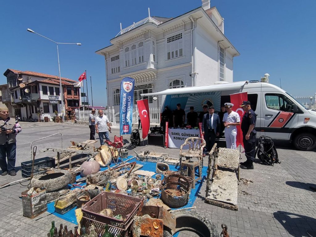 Denizden Çıkan Atıklar Mütareke Meydanı’nda SergilendiMudanya’da 5 Haziran Dünya Çevre Günü kapsamında Tirilye, Arnavutköy ve Güzelyalı limanlarında Sahil Güvenlik Komutanlığı’na bağlı dalgıçlar tarafından deniz dibi temizliği gerçekleştirildi.